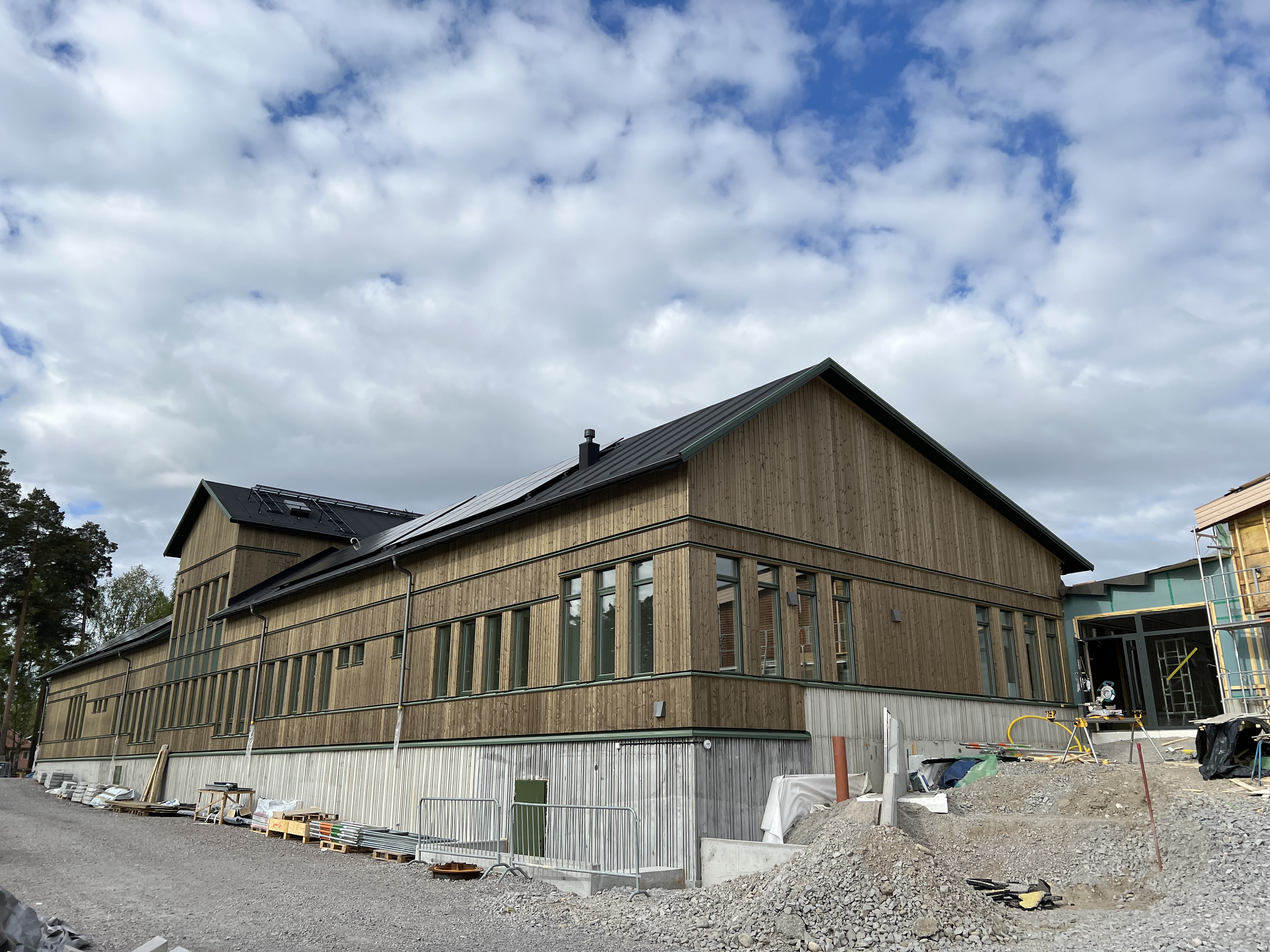 Finningeskolan i Strängnäs expanderar. Vi har bidragit med arbetet med mark och grund inför montage av byggnadsmoduler ifrån Moelven. Sammanbyggnad av de två huskropparna utförs av våra snickare på plats.