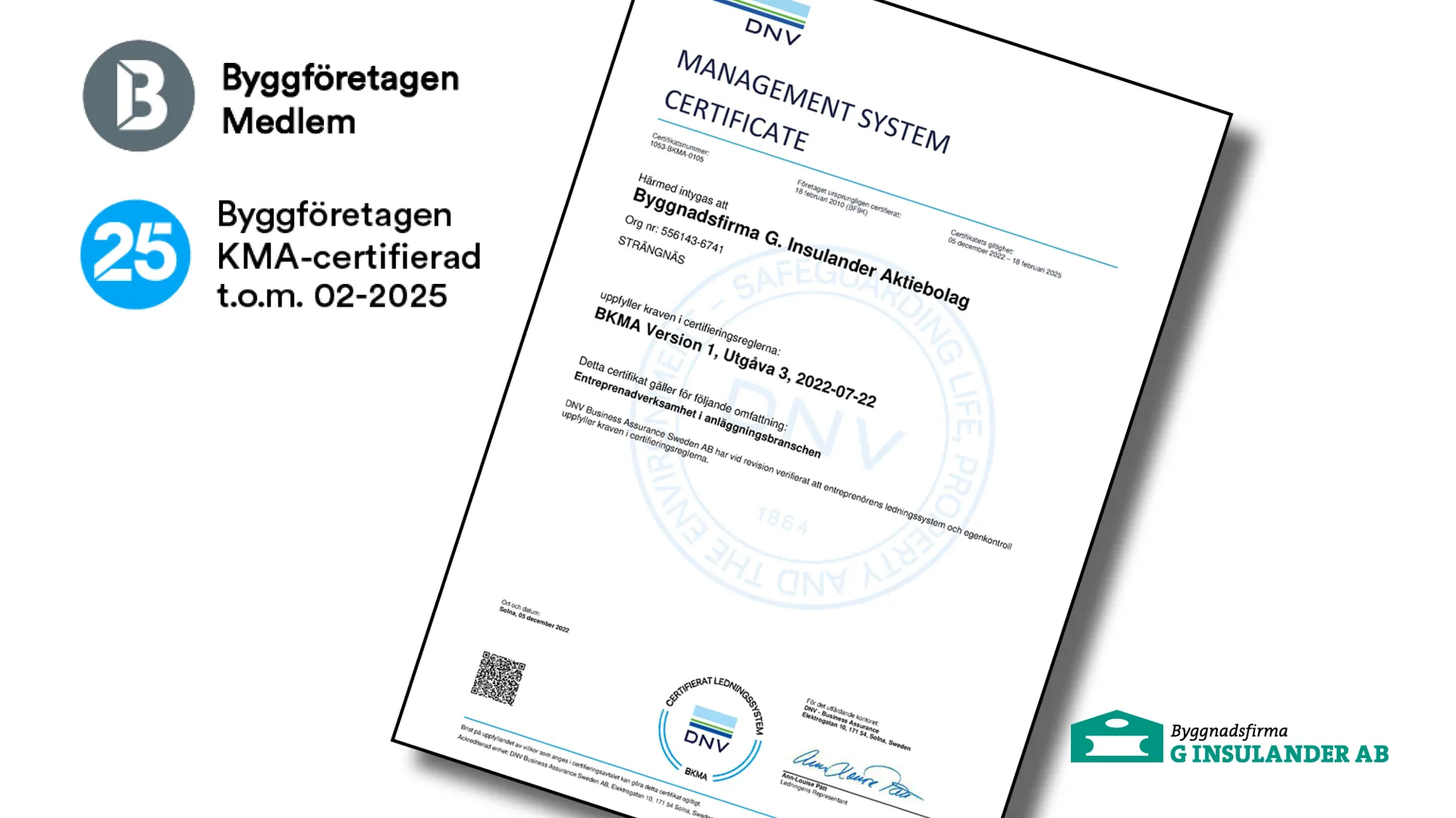 Efter genomförd revision på vårt Kvalitet & Miljöledningssystem har vi ett förnyat BKMA-certifikat genom Byggföretagen.
