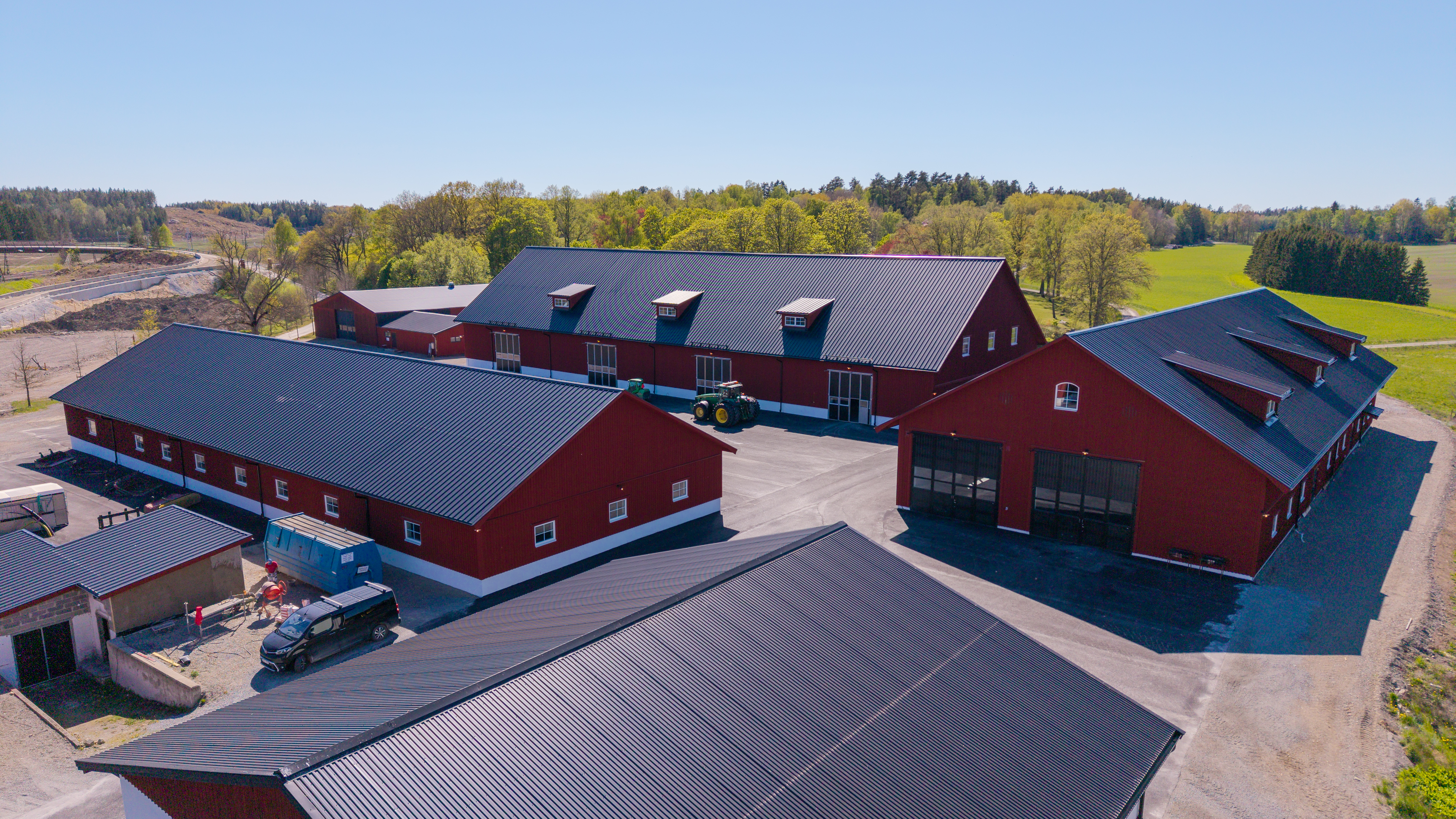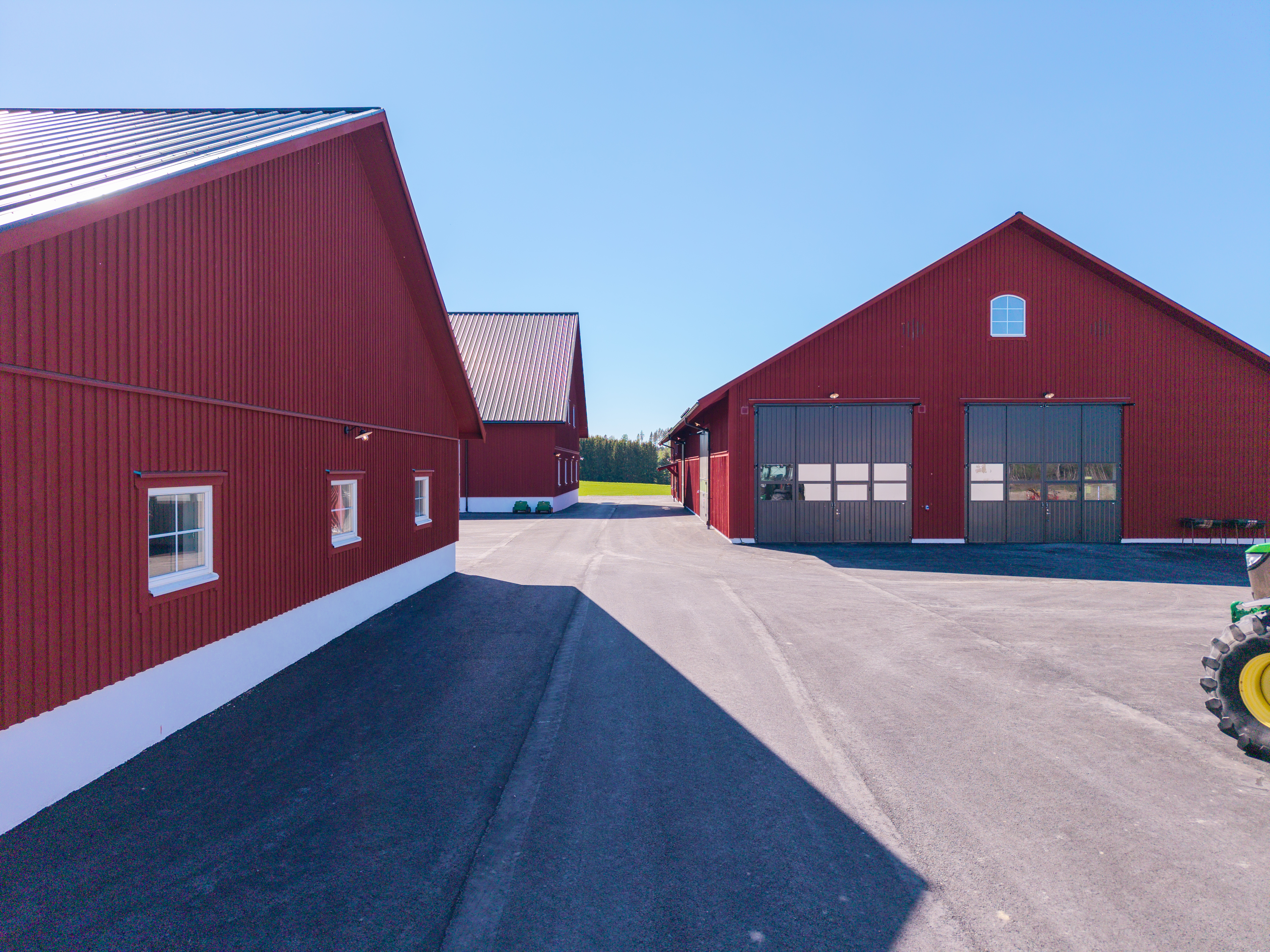Nyproduktion av större lantbruksfastigheter i Mälardalen. Lösvirkesbyggnation av totalt ca 5.000 m2 fördelat på fyra byggnader. Verkstadsutrymmen, servicelokaler för personal, magasin och förråd. Med solcellsanläggning.